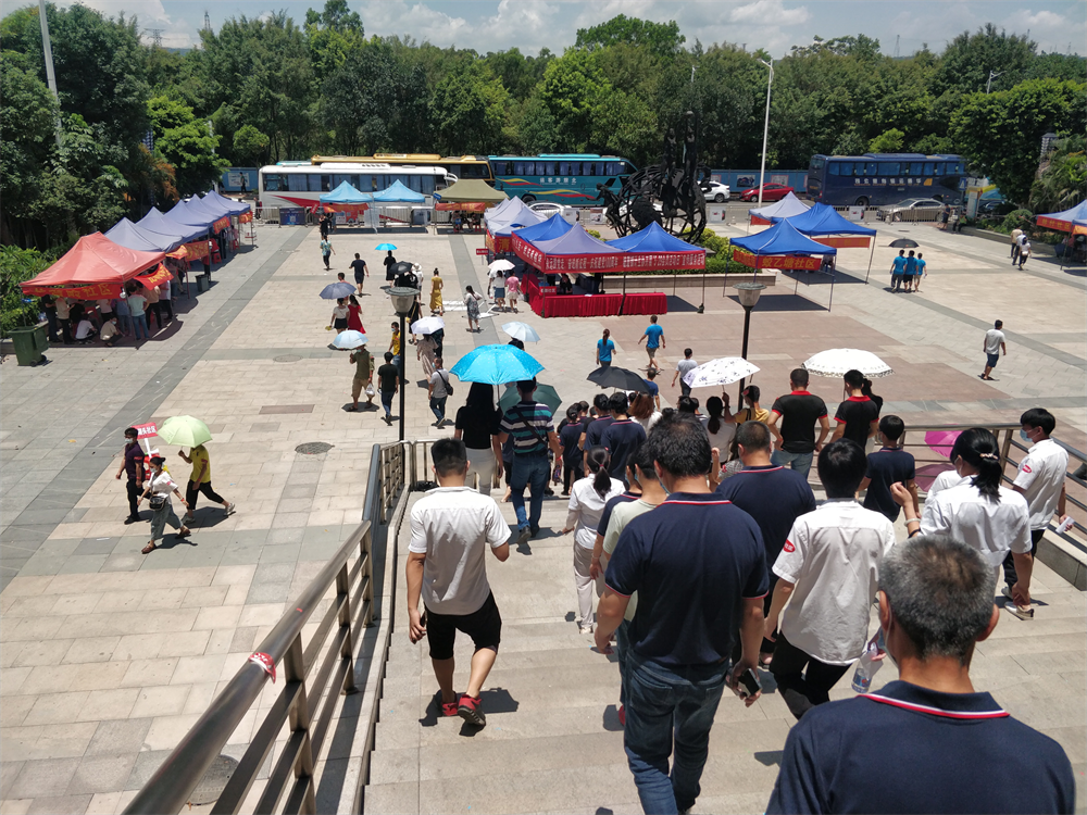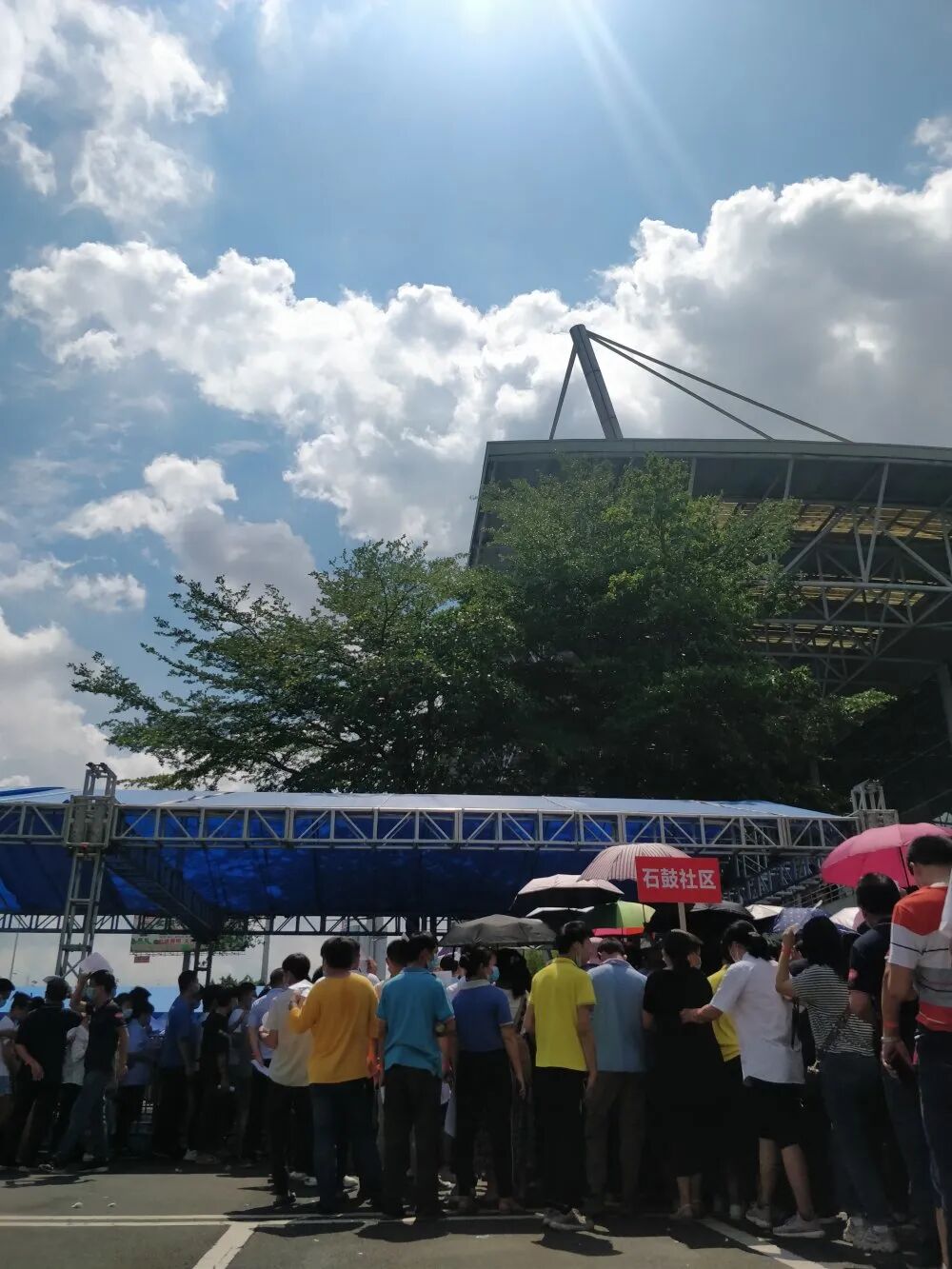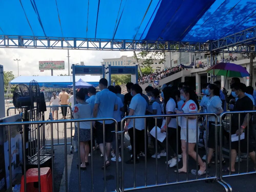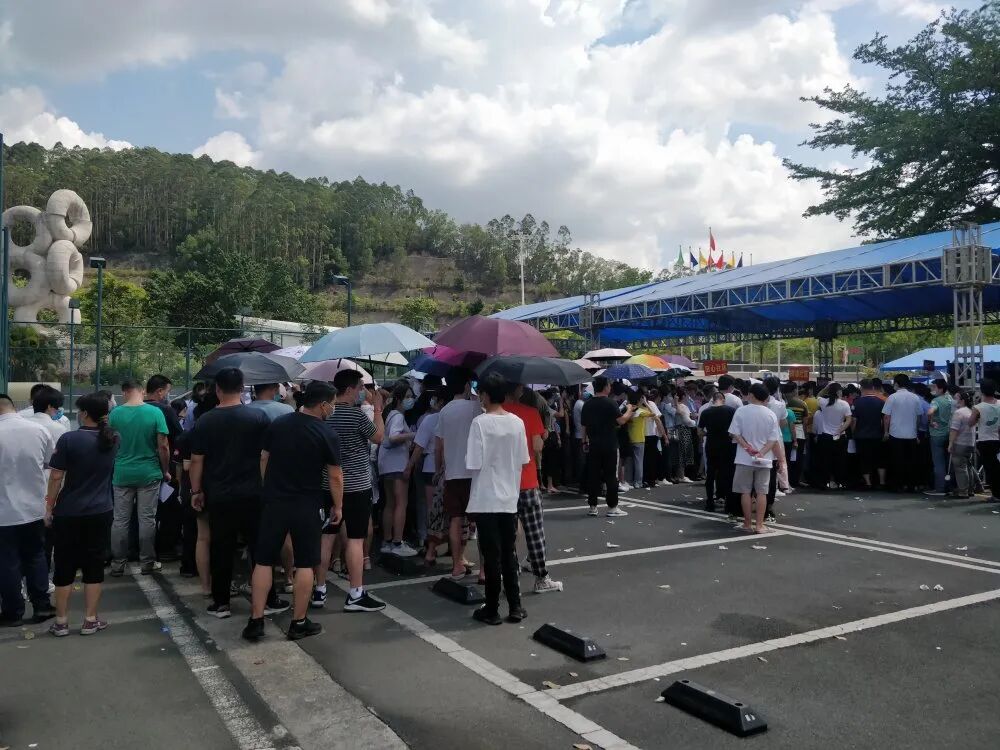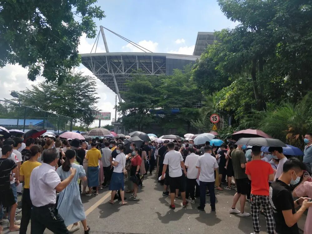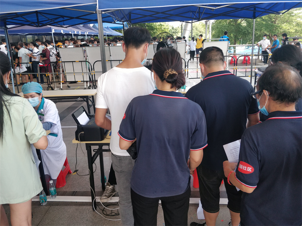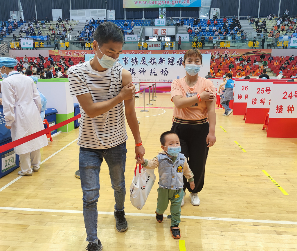 这是东莞首个大型临时接种点的场景。据说东莞卫生局给塘厦镇设定的目标是要在一天内完成1.5万人的疫苗接种。