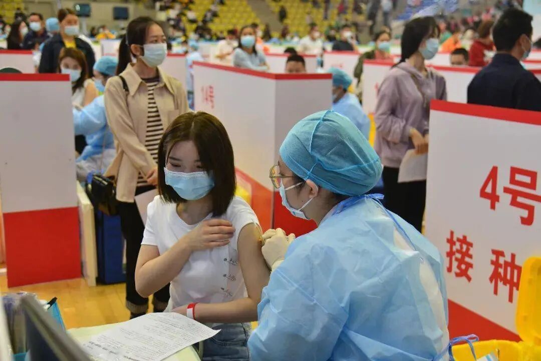 接种区分60个接种单元,由各接种单位分工合作,进入接种区的人群分别佩戴红色、绿色、蓝色手环,根据手环颜色进入指定区域接种。