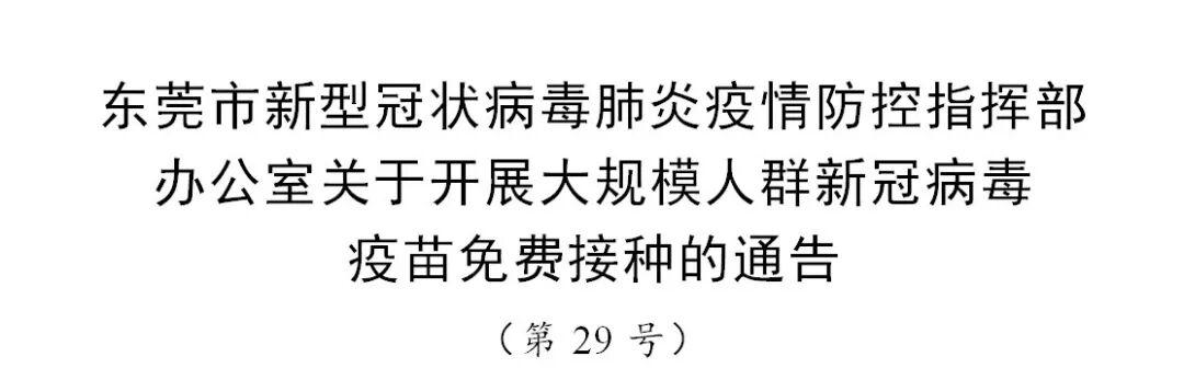 从即日起,东莞为辖区内18-59岁的所有未接种新冠病毒疫苗的市民(没有户籍要求)进行免费接种。